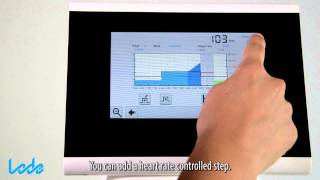 Программируемый модуль управления имеет сенcорный дисплей 7’’. Позволяет выбирать из 6 установленных протоколов нагрузки или запрограммировать и сохранить до 50 пользовательских протоколов. Имеет интерфейс на русском языке. Позволяет визуализировать, контролировать и изменять следующие параметры нагрузки: текущая и целевая скорость, текущий и целевой угол наклона, расстояние, время, энергия, режим, выбранный протокол, ЧСС (при наличии модуля измерения ЧСС), артериальное давление (при наличии модуля измерения АД), уровень сатурации (при наличии модуля измерения SpO2).